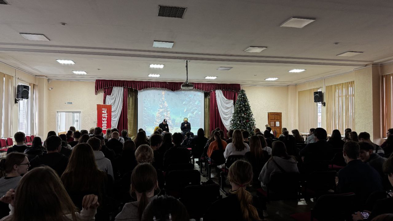 Сегодня студенты колледжа собрались в актовом зале первого корпуса на уникальном показе короткометражного фильма «Любимый номер».