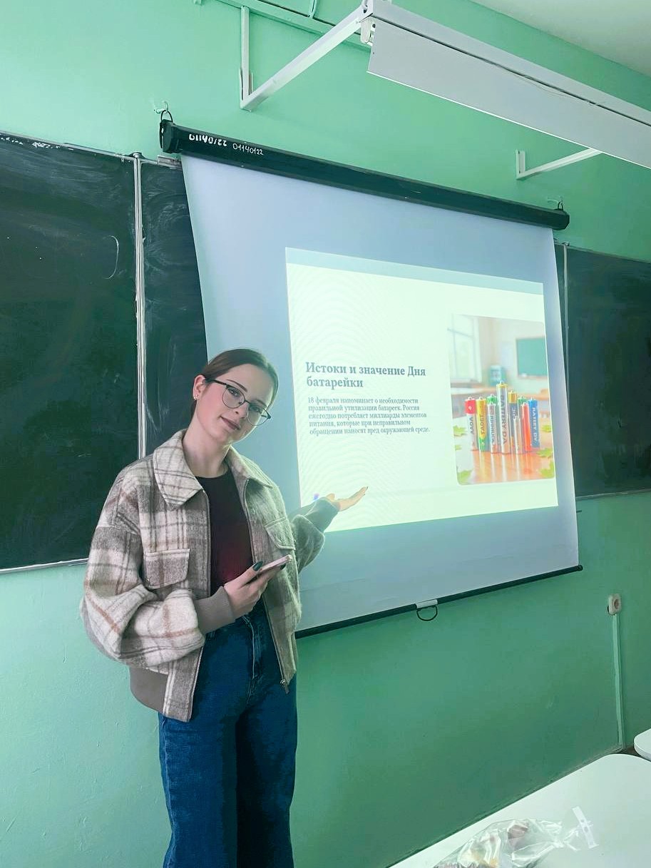 В День батарейки, который отмечается 18 февраля, студентки экологического объединения из групп СТ25-1 и СТ25-3 провели просветительское мероприятие, посвящённое одному из самых распространённыхисточников питания в современной жизни. Студенты узнали о видах, составе, применении батареек, почему надо сдавать их, а не выкидывать в обычный мусор и конечно же о пунктах приема в нашем городе. Закрепили полученные знания небольшим интерактивом, где надо было соединить тип батарейки с прибором и какие химические элементы присутствуют в составе.