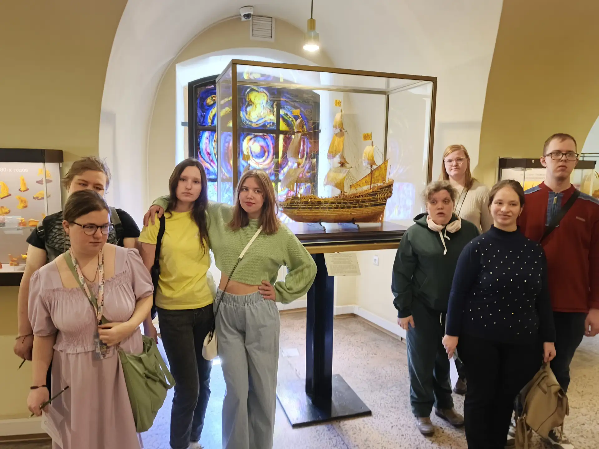 В известном и всеми любимом музее янтаря весеннее оживление. Уже с утра в кассу выстроилась длинная очередь из любознательных жителей и гостей нашего прекрасного города. Нас ждала насыщенная экскурсионная программа с квестом. Доброжелательный гид, Майя Валерьевна, поведала увлекательные истории об уникальном солнечном камне, демонстрируя многочисленные экспонаты из янтаря, относящиеся к периоду от неолита (IV–II тысячелетия до нашей эры) до современности.: самородки (весом более 1 кг), уникальные инклюзы, посуда, украшения, статуэтки, вазы, часы, шкатулки, мозаичные картины. Все восхитило своей красотой и трудоемкостью изготовления! Познавательный квест завершился вопросами, на которые нужно было правильно ответить, чтобы получить приятные презенты.