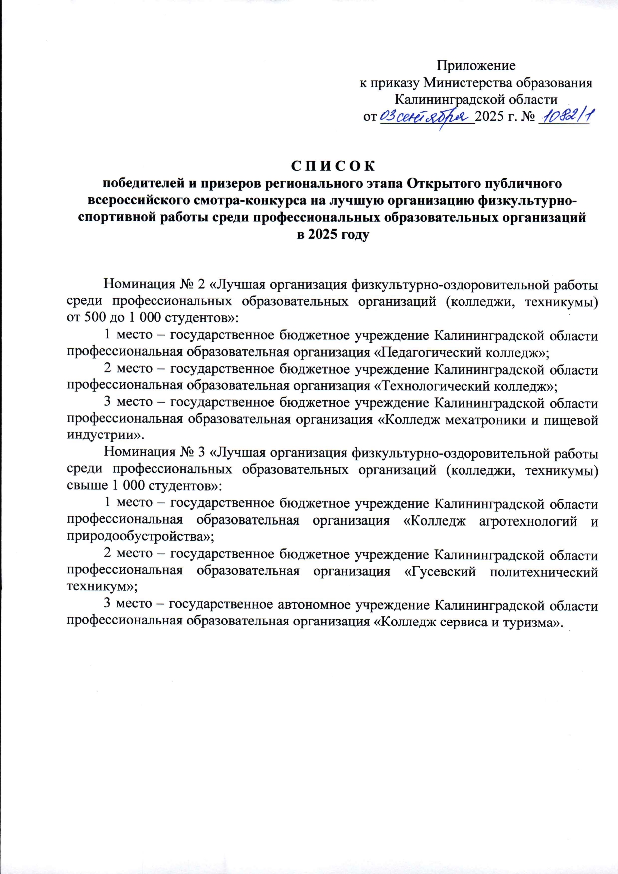 Ежегодно Министерством образования Калининградской области среди профессиональных образовательных организаций проводится публичный конкурс на лучшую организацию физкультурно-спортивной работы.