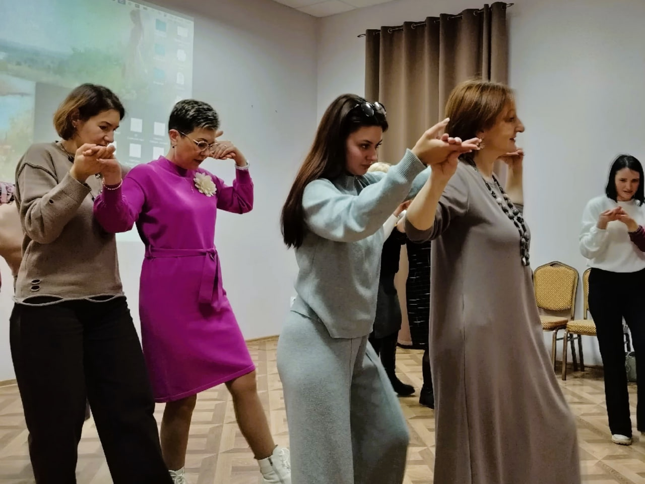 Анастасия Алексеевна Абрамова, кандидат культурологии, ведущий специалист семейного центра "Рождество" (г. Москва), представила слушателям коммуникативные практики русской культуры и их смысловую составляющую, продемонстрировала значимость поднимаемых вопросов в современном мире подростков, их самоидентификацию. Все присутствующие приняли активное участие в фольклорной танцевально-игровой программе, в которую были включены различные активности.