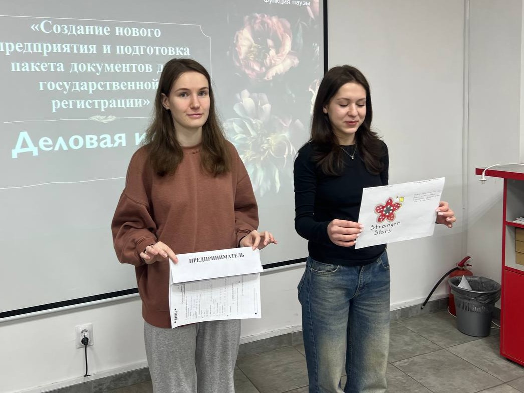 В честь Дня студента на уроке «Предпринимательская деятельность в сфере гостиничного бизнеса» прошла увлекательная деловая игра. Её формат — «Создание нового предприятия и подготовка пакета документов для государственной регистрации».