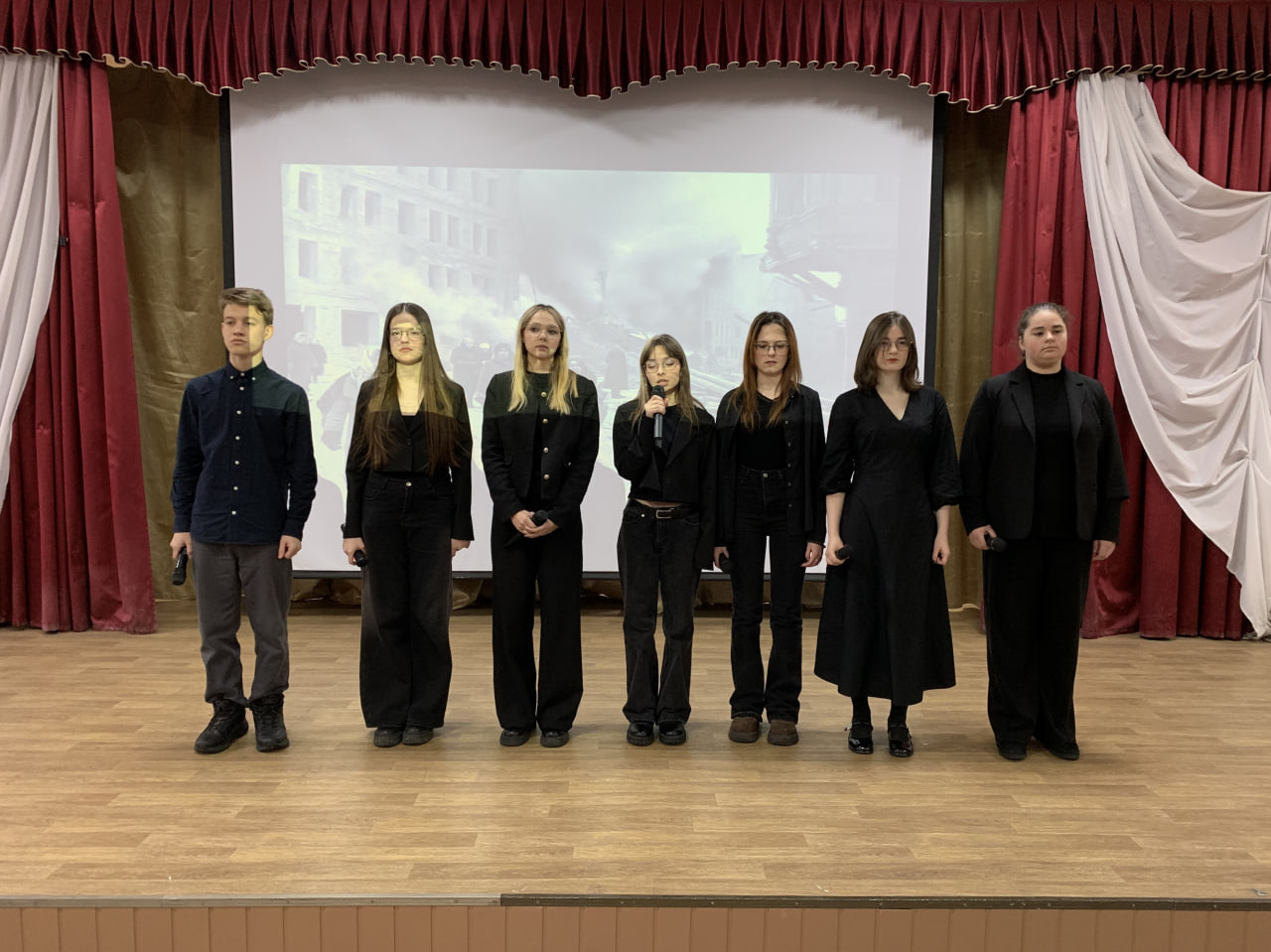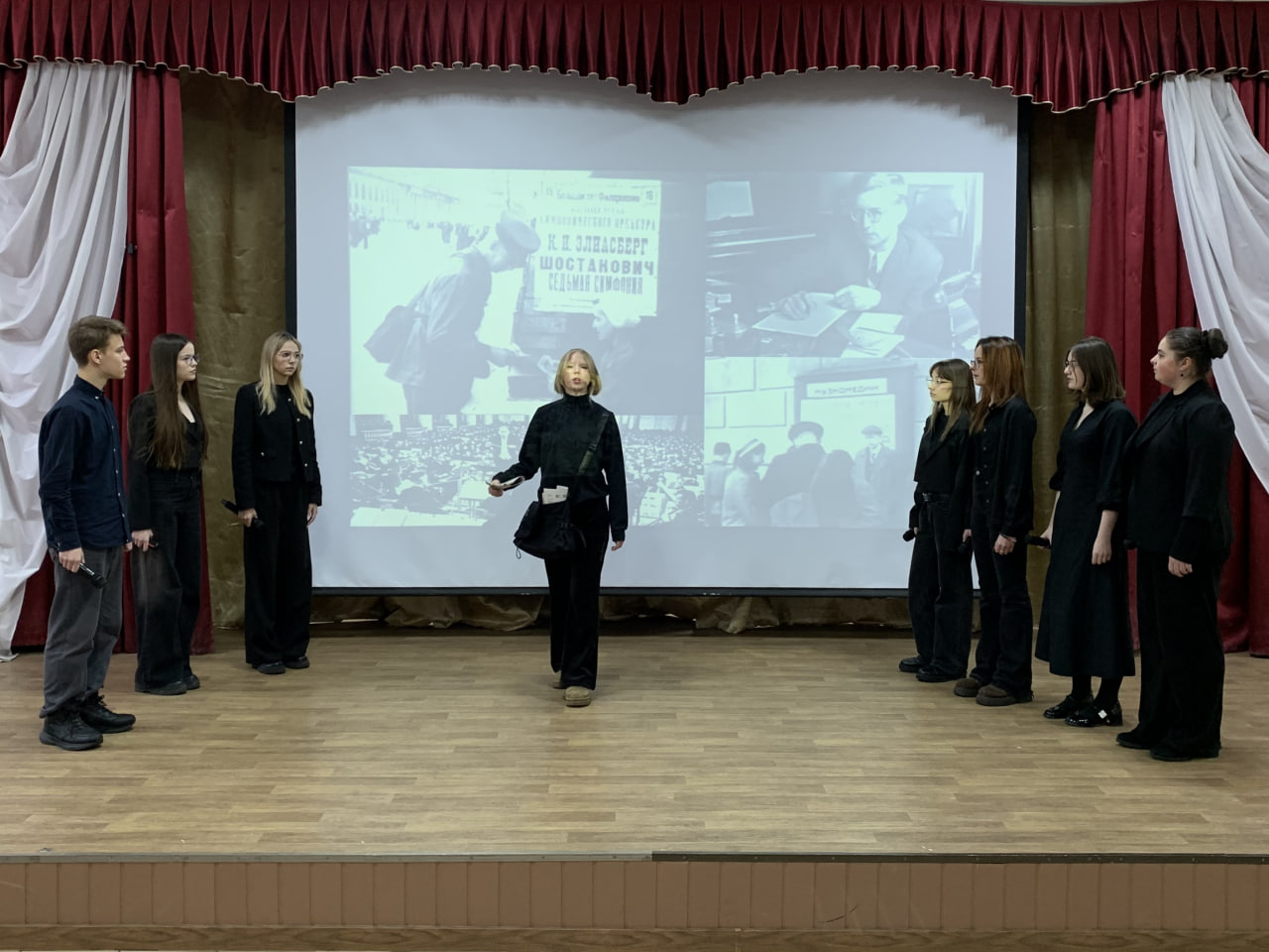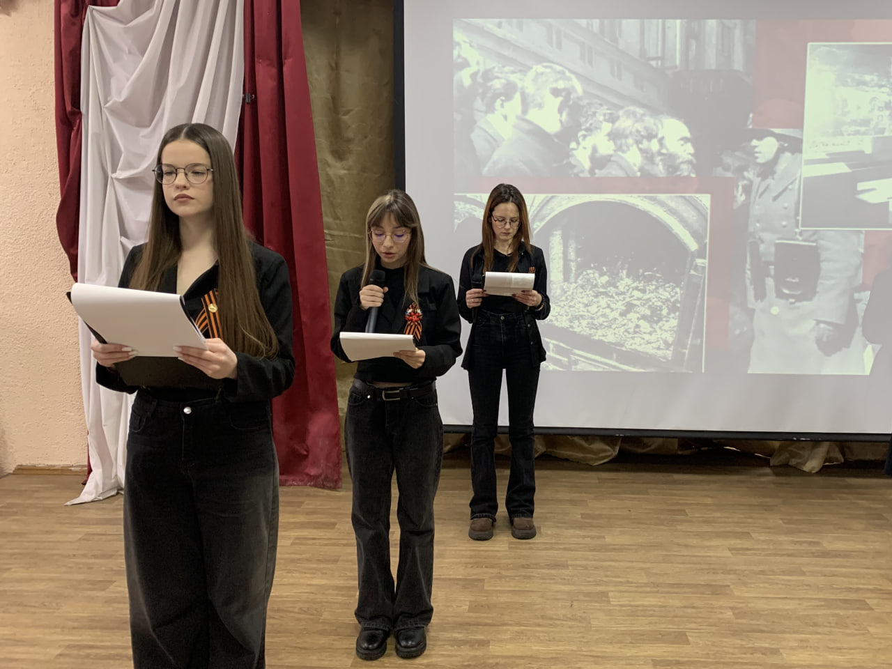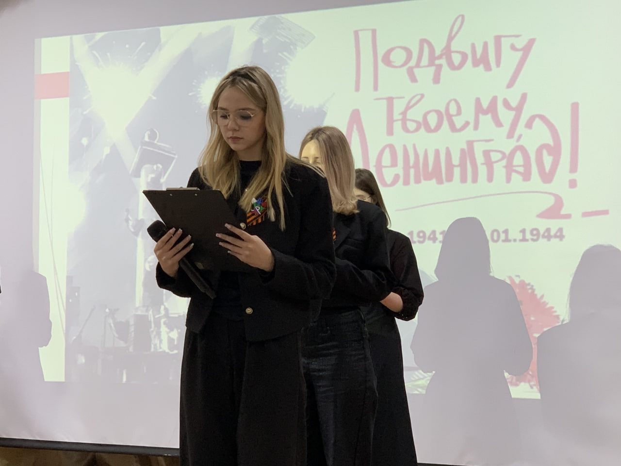 Студенты групп ПКД24-1, СТ25-1, СТ25-2, СТ25-3 студенческого объединения любителей театра и истории (руководитель И.А. Чугреев), рассказали присутствующим на мероприятии зрителям, о трагедии блокадного Ленинграда и героизме его жителей и защитников. Подробно были раскрыты планы нацистов и их союзников по уничтожению как ленинградцев, так и самого Ленинграда. Было рассказано и о значении снятия блокады Ленинграда для дальнейшей победы в Великой Отечественной войне. Ярким моментом стал театрализованный пролог выступления, В нем студенты сыграли сцену о жителях блокадного Ленинграда и читали стихи поэтической музы этого города, О.Ф. Берггольц.