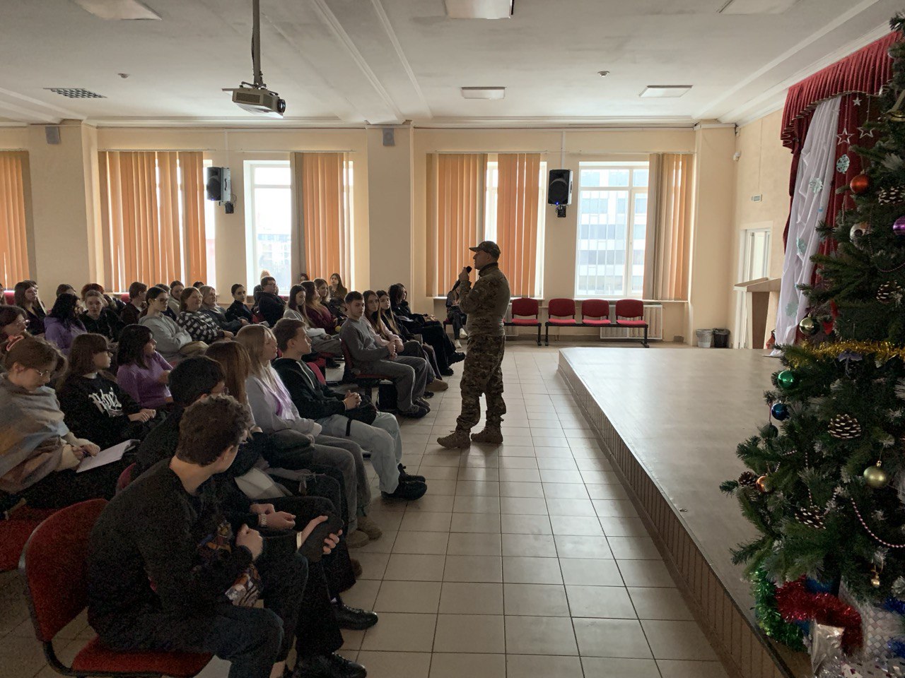 Спикером беседы выступил резервист «Барс39» (БАРС 39 (Мобилизационный людской резерв)), который так же является лектором Общества Знание.