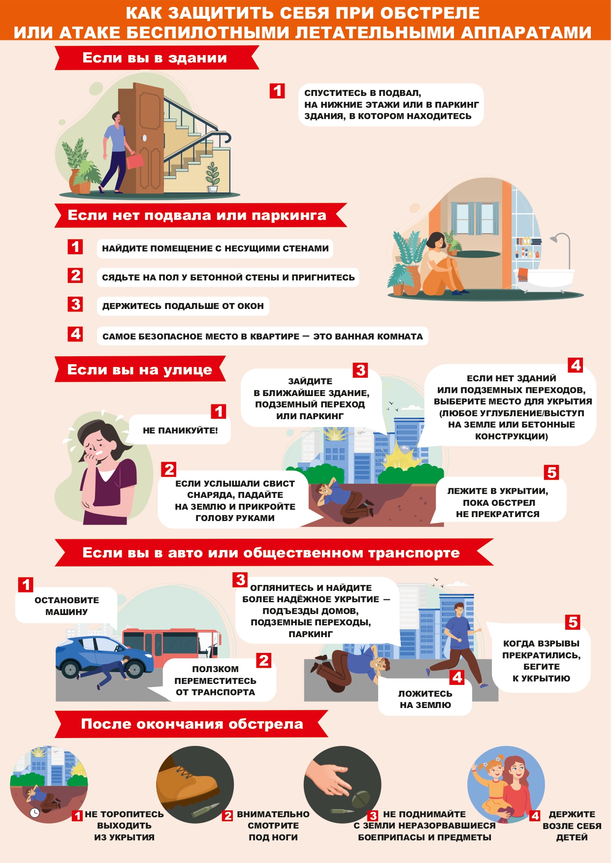 Что нужно делать в каждом случае, если вы оказались на улице, в здании или на дороге двигаетесь в автомобиле. Следуйте этим мерам безопасности, берегите себя и своих близких, будьте подготовлены к возможным угрозам!