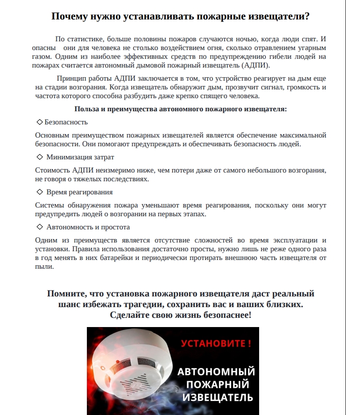 Добрый день, уважаемые родители! Министерство образования Калининградской области направляет соответствующую памятку о необходимости установки пожарных извещателей. Ознакомьтесь, пожалуйста!