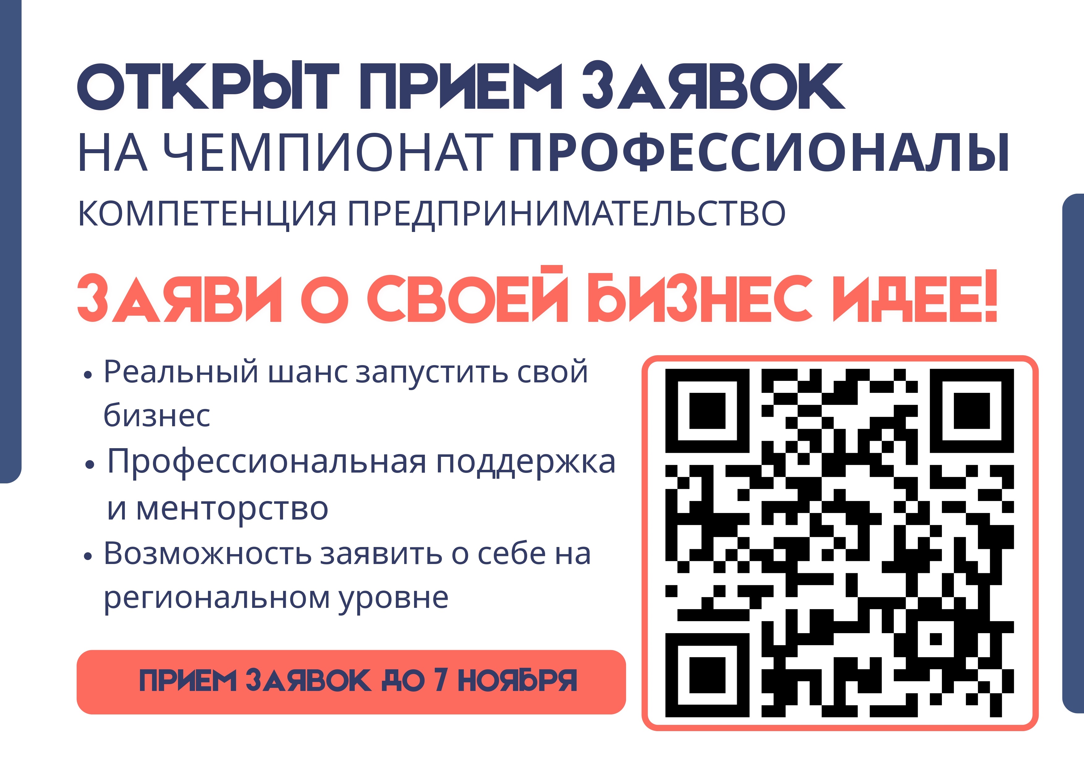 Объявляется набор команд для участия в отборочном туре регионального чемпионата «Профессионалы» по компетенции «Предпринимательство»